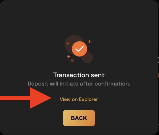 第八步:交易已发送。您可以点击"View on explorer"在 mempool 浏览器上追踪您的交易。
